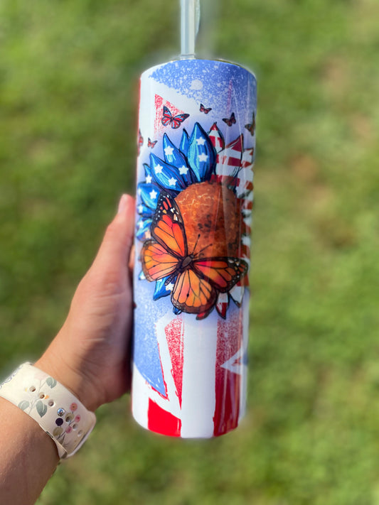 Sunflower Butterfly Patriotic Tumbler